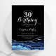 Vänsterblått, svart och silver-agate-inbjudan till 30års födelsedag. Elegantens moderna utformning med royal blue water agate marble geode-bakgrund, faux glitter silver och typography-skript. Trendig inbjudan-kortets perfekt för en snyggt kvinnor i firande. Skrivna Zazzle-inbjudningar eller digital utskrivbar mall för omedelbar nedladdning.