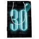 Med 30 neontecken på mörkens tegelväggsbakgrund med genomskinlig vattenballong för ett 30års födelsedag.