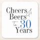 30års födelsedag Öl och Cheers Typography Party Underlägg Papper Kvadrat