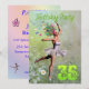 En vacker balerina-blomdans på födelsedagsfest inbjudan. Ballerina bär en vit tutu och har spår av blommor som kommer från hennes hår. Hon dansar genom en fullt daisy.