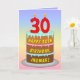 Den här glatta och uppslagna födelsedagekortdesignen med hälsningskortet har en tecknad-stil-bild av en treskiktad födelsedagskalas med numeriska steartiklar ovanpå som visar siffran "30", tillsammans med meddelandet "LYCKLIG 30ÅRS FÖDELSEDAG," och en redigerbar mottagare av namn. Bakgrunden till framsidan har en flerfärgad pastellfärgad regnbågsspektrum som inspirerar till övertoning mönster. Insidan har ett anpassat hälsning-födelsedagsmeddelande, eller så kan det kanske rensas och lämnas tomt om ett meddelande ska skrivas för hand i stället. Ett roligt, anpassat födelsedag som detta kan vara ett roligt sätt att leverera önskemål på födelsedagen till någon som firar sin trettioårsdag. [~Z0000625]