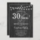Rustic 30års födelsedag-inbjudan Rustic enkel design med mörk grått wood mönster och fairy string ljus. Teckensnitt för funktionsskript. Skål till 30 år! Kan vara personlig i vilken ålder som helst! Berätta om du behöver anpassa dig ytterligare.