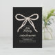 Elegant black and white invitation features large white pearl script bow on a black background. Calligraphy adds a special touch. All text is editable.