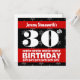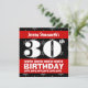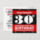 Den här contemporaryns svarta röda och vita design med sina stora och feta bokstäver är en roligt till inbjudan till en mycket speciellare persons SURPRISE 30års födelsedag firande. Text på kort i helt anpassade - Du kan också ändra färgerna för text för ett annat utseende. Du kan experimentera med olika papprare typer genom att klicka på fliken "Inbjudningsalternativ" i det övre högerna. Jag rekommenderar den metalliska pappra som ge din födelsedag inbjuder till en festshimmer och shine.