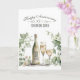 Watercolor wine bottle and two wine glasses, set against a soft green floral frame of ivy and eucalyptus, for the couple's 30th wedding anniversary.