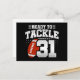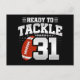 Denna fotbollsfödelsedagsdesign är perfekt för en 31-års födelsedag fotbollstema födelsedagsfest för att fira att man fyller 31! Har 'Redo att tackla 31' 31-årsdag fotbollscitat med fotbolls grafik. Perfekt för alla som älskar fotboll som fyller 31!