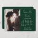 Med temat grönt och vitt färg sparar kalendern datumet visningar ett modernt, minimalistiskt tema. Kortets baksida är en grönt med vit text för påminnelsen om bröllop-datum.