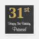 Den här snyggten har en lyxig och sofistikerad födelsedagstext med den pappra napkin-designen ett stort ordnummer "31a" som har ett imitation/faux-guld-inspirerat utseende, utöver födelsedagstecknet "Lycklig 31a Birthday" och ett anpassade hälsning i ett skript-namn-teckensnitt. Den har också en bakgrund med svart färgad. Födelsedag med pappra servetter som detta kan vara ett roligt sätt att fira någons trettioförsta födelsedag. [~Z0000516]