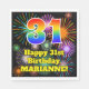 Den här roliga och spännande pappra napkin-designen med födelsedagstext har ett stort nummer "31" med en färgstark regnbågsspektrumövertoning inspirerad mönster. Det innehåller också budskapet "Lycklig 31a Birthday" och ett redigerbart namn. Bakgrunden är ett spännande och färgstarkt brinnande, berömmande fyrverkerier som inspirerade mönster. Födelsedag som pappra servetter som denna kan vara roligt till använda vid en party som hålls för någon som firar sin trettioförsta födelsedag. [~Z0000574]