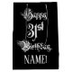 Den här utförliga och formella presentsäcksdesignen med födelsedagstext innehåller meddelandet "Lycklig 31a Birthday," i opulent text med skript stil, på en svart färgad. Det har också en anpassningsbar som tar emot namn. En matad presentsäck på födelsedagen kan vara ett respektabelt sätt att figurera en gåva eller present som ges för att fira någons trettioförsta födelsedag. [~Z0000557]