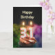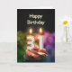 En kopp-tårta med ljus. Ljusen består av nummer 31, för en 31a. Ett födelsedagskort som passar alla.