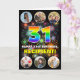 På framsidan av denna sminka och roligt-matematiska hälsningskort finns numret "31" med ett dynamiskt, flerfärgat regnbågsspektrum inspirerat övertoningen mönster, tillsammans med meddelandet "LYCKLIG 31a BIRTHDAY" och ett eget namn, på ett flerfärgat, brinnande fyrverkeripjäs inspirerat mönster. Längst upp och grund på framsidan finns bilder som kan anpassas, kanske med foton av mottagarens familj och vänner. Insidan innehåller ett hälsning-meddelande från anpassningsbarnas födelsedag, eller kan kanske tas bort och lämnas tomt om ett meddelande ska skrivas för hand i stället. Ett spännande hälsningskort i anpassadet som detta kan skickas i firande på någons trettioförsta födelsedag. (Photography © Storytree Studios, Stanford, CA.) [~Z0000660]