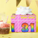 Den här festliga 31an och lycklig-födelsedagstalen, som är ett pappert inslagningsmönster, har ett stort nummer "31" med ett färgstarkt regnbågsspektrum som inspirerar gradienten mönster. Det innehåller också meddelandet "Lycklig 31a Birthday" och ett eget namn. Bakgrunden har en rosa i mörk och ett mönster i ljusa rosa rand som innehåller levande hjärtformer i rosa. Att packa pappert som detta kan vara ett roligt sätt att packa en födelsedagspresent eller gåva som ges till någon som firar sin trettioförsta födelsedag. [~Z0000415]
