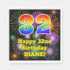 Den här trevliga och roligt-födelsedagsdesignen av papper napkin har ett stort nummer "32" med en färgstark regnbågsspektrumövertoning som inspirerade mönster. Det innehåller också budskapet "Lycklig 32:a födelsedagen" och ett redigerbart namn. Bakgrunden är ett dynamiskt och färgstarkt mönster som inspirerats av att det ser ut som om det brinner berömda fyrverkerier. Pappra servetter som denna kan användas vid ett party som hålls i firande på någons trettioandra födelsedag. [~Z0000574]