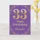 33-årsfirande lila och guld glitterram. För ytterligare anpassning, klicka på "Anpassa den"-knappen och använd vårt designverktyg för att ändra denna mall.