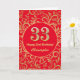 33:e födelsedag Röda och Guld-Blommönstret Kort