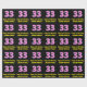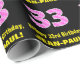Den här roligten och den glatta födelsedagskalematerade pappra designen har ett stort nummer "33" med en mörk rosa och ljusa rosa stripade mönster som innehåller hjärtformer. Det innehåller också hälsning:s födelsedagsmeddelande "Lycklig 33:e födelsedag", och ett anpassade som tar emot namn. Det kan vara ett roligt att slå ihop en gåva eller present som ges för att fira någons 33-årsdag... papper på födelsedagen. Det kan också vara en roligt för någon vars födelsedag infaller den 14 februari (Alla hjärtans dag) på grund av dess kärleksfulla hjärtsymboler och färg. [~Z0000435]