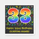 Den här roligten, färglös och pulserande födelsedagstecknet papper napkin-design har ett stort nummer "33" med en regnbågsspektrumövertoning som inspirerade mönster. Det innehåller också budskapet "Lycklig 33:e födelsedag" och ett anpassade namn. En del av bakgrunden har ett färgstarkt musik noter och symboler mönster. Den här typen av pappra blöjor kan vara roligt till använda på en firande som hålls för att hedra en musiker, en sångare, en kompositör eller någon annan som firar sin 33-årsdag. [~Z0000421]