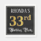 Den här eleganten och den pappra napkin-designen som kallas för födelsedagskalender har ett anpassade namn och meddelandet "33:e Födelsedagsfesten". Det stora antalet "33:e" har en imitation/faux guld-inspirerad färgning av mönster, och ord "Födelsedagsfest" är i lyxig text med skript-stil. Bakgrunden är färgadens svarta som standard (även om den kan anpassas). Ogenomskinliga, lyxiga pappra blöjor av detta slag kan användas vid en födelsedagsfest/firande som hålls i firande på någons trettiotredje födelsedag. [~Z0000565]