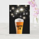 Party sparkler i ett kall glas öl med ljussträng mot svart bakgrund under 34 år. Ålder kan ändras. Bakgrunden till färg kan ändras.