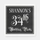 Den här pappra napkin-designen i finare och den opulenta födelsedagskalematoden har ett redigerbart namn och meddelandet "34:e Födelsedagsfesten". Det stora talet "34:e" och "Födelsedagsfesten" i ord finns i utvecklad text med skript-stil och bakgrunden är färgad svart som standard (även om den kan anpassas). Luxuriga, opulenta pappra blöjor som denna kan vara användbara vid en födelsedagsfest/firande som hålls för att fira någons trettiofjärde födelsedag. [~Z0000563]