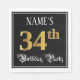 Den här opulenten och finare-födelsedagen kallas papper napkin-design med personlig namn och meddelandet "34:e Födelsedagsfesten". Det stora antalet "34:e" har faux/imitation guld-inspirerad färgämne mönster, och ord "Födelsedagsfest" är i lyxig text med skript-stil. Bakgrunden är färgadens svarta som standard (även om den kan anpassas). Elegant, lyxiga pappra blöjor som denna kan vara användbara vid en födelsedagskalender som hålls för att fira någons 34-årsdag. [~Z0000565]