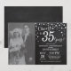 35-års bröllopsdag med anpassad bild. Kritskriftsbräda Svart och silverinbjudan. Trettiofem års bröllopsdag. Kritskriftsbräda Svart och silver glitter diamantbakgrund. Silverkonfetti. Vuxen födelsedag. Kvinna eller man manlig födelsedagsfest. För ytterligare anpassning, klicka på "Anpassa"-knappen och använd vårt designverktyg för att ändra denna mall.