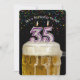 Nummer 35 födelsedagsljus i mugg på öl med färgstark konfetti på svart för 35e födelsedagsfest inbjudan.
