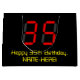 Den här nonsens- och roligt-födelsedagskalans presentväska har ett stort nummer "35" med en röd digital visning för sju segment som inspirerar till utseende, tillsammans med meddelandet "Lycklig 35e Birthday" och ett eget namn i nörd text i stil gult, på en svart färgad. Anpassadets presentsäckar som denna kan användas för att slå in gåvor eller presenter ges för att hedra någons trettiofemte födelsedag. [~Z0000389]