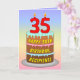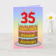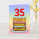 Denna glatta och roliga födelsekortdesign innehåller en tecknad-stil-bild av en treskiktad födelsekaka med numeriska stearmerade ljus ovanpå som visar nummer "35", tillsammans med meddelandet "LYCKLIG 35E BIRTHDAY," och en mottagare av anpassade namn. Bakgrunden till framsidan har ett flerfärgat pastellspektrum som inspirerar till gradienten mönster. Insidan innehåller ett hälsning-meddelande från personligens födelsedag, eller kan kanske tas bort och lämnas tomt om ett meddelande ska skrivas för hand i stället. Ett färglöst, anpassat födelsedag som det här kan vara ett roligt sätt att leverera födelsedag till någon som firar sin trettiofemte födelsedag. [~Z0000625]
