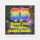 Den här roliga och glatta pappra napkin-designen med födelsedagstext har ett stort nummer "35" med en färgstark regnbågsspektrumövertoning som inspirerade mönster, tillsammans med meddelandet "Lycklig 35e Birthday," och ett eget namn. Bakgrunden är ett flerfärgat mönster som inspirerats av att det ser ut som att bränna berömda fyrverkerier. Pappra servetter som denna kan användas vid ett party som hålls i firande på någons trettiofemårsdag. [~Z0000574]