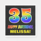 Den pappra napkindesignen har ett stort nummer "35" och roligten "GRATTIS PÅ FÖDELSEDAGEN". Båda har en regnbågsspektrumövertoning som inspirerade mönster, tillsammans med en fet gult personlig mottagare namn. Bakgrunden är svart på färgad. Roligt, anpassadets pappra blöjor av det här slaget kan användas vid en födelsedagsfest som hålls för att fira någons trettiofemårsdag. [~Z0000476]