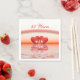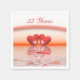Napkins med min bild av två korallhjärtan flytande på vatten under en regnbåge. Anpassadet säger "35 år".