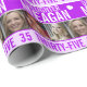 Grafisk lila, lilac och vit med en liten vit 35e för födelsedagspresent papper. Ljusa bildfödelsedagsfigursättningar med tre platshållare för dina egna foton och för anpassning med ditt eget namn-, ålders- och invändiga meddelande. Matchande födelsedagskort är också tillgängligt. Unik design av Sarah Trett för www.mylittleeden.com