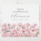 Perfect table decor for an January birthday party. Carnation is the birth flower for that month. It forms a pretty watercolor bottom border on this floral personalized label. The birthday guest of honor's name, age and birthdate are placed above it using elegant calligraphy and typography. All text is editable.