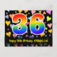 Framsidan av denna spännande, färgglada och roliga födelsedagskortdesign har en stor siffra "36" med ett regnbågsspektrum-gradering-mönster, tillsammans med meddelandet "Grattis på 36-årsdagen," och ett personligt mottagarnamn. Framsidan har dessutom ett livfullt och färgglatt mönster av kärleksfulla hjärtrymder. Baksidan har ett anpassningsbart födelsedagsmeddelande, eller kanske kan rensas och lämnas tomt om ett meddelande ska skrivas för hand istället. Ett anpassningsbart födelsedagskort som detta kan vara ett roligt sätt att erkänna någon på deras trettioårsdag. Postkort som detta kan också användas för att inbjuda gäster till en födelsedagsfest eller firande som hålls för någon som fyller