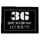 Den här vintagens utseende Roaring Twenties-utseende är inspirerad av presentsäcksdesignen på födelsedagskalan och har ett stort konsthugga som ser inspirerat nummer "36", meddelandet "Lycklig 36:e födelsedagen", en personlig namn och en gräns mönster som består av tunt linjer. Bakgrunden är svart på färgad. En dylik presentpåse på födelsedagen kan användas för att slå ihop en gåva eller present som ges för att fira någons 36-årsdag. [~Z0000495]