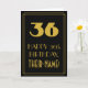 Under 1920-talet/1930-talet inspirerades stil av och vintage-/återtro-stil-födelsedagskalendelsdesignen har ett stort konsdeco-utseende inspirerat nummer "36", budskapet "LYCKLIG 36:e BIRTHDAY", ett eget namn och ett gräns mönster som består av tunt linjer på framsidan. Bakgrunden till framsidan är svart färgad. Insidan har ett redigerbart hälsning-födelsedagsmeddelande, eller så kan det kanske rensas och lämnas tomt om ett meddelande ska skrivas för hand i stället. Ett sådant här hälsningskort i anpassadet kan skickas i firande på någons trettiosjätte födelsedag. [~Z0000499]