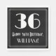 1920-talet/1930-talet inspirerade stil och vintagens utseendemässiga pappra napkin-design har ett stort konsthundra-utseende som inspirerat nummer "36", Lycklig 36:e födelsedagen, en personlig namn och en gräns mönster som består av tunn linjer. Roligt, personlig pappra blöjor av det här slaget kan användas vid en födelsedagskalender för att hedra någons trettiosjätte födelsedag. [~Z0000461]