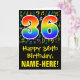 Framsidan av den här roligten, den livfulla och färgstarka födelsedagekortdesignen har ett stort nummer "36" med en regnbågsspektrumövertoning som inspirerade mönster, tillsammans med meddelandet "Lycklig 36:e födelsedag", och en anpassningsbar mottagare namn. På framsidan finns också en färgstark musik noter och symboler mönster. Insidan innehåller ett hälsning-meddelande från anpassadets födelsedag, eller kan kanske tas bort och lämnas tomt om ett meddelande ska skrivas för hand i stället. Ett sådant här födelsedagskort i personligen kan vara ett roligt för att skicka önskemål till en musiker, sångare, kompositör eller någon annan som firar sin trettiosjätte födelsedag. [~Z0000420]