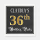 Den här opulenta och lyxiga pappra napkin-designen för födelsedagsdagen har anpassadet namn och meddelandet "36:e Födelsedagsfesten". Det stora talet "36:e" har en imitation/faux guld-inspirerad färgning av mönster, ord "Födelsedagsfest" är i elegant-text-stil och bakgrunden är färgad svart som standard (även om den kan anpassas). Elegant, ornera pappra servetter som denna kan vara bra att ha på en födelsedagsfest/firande för att hedra någons 36-årsdag. [~Z0000565]