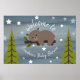 En babydusch poster med en sömnig björn omgiven av stjärnor