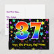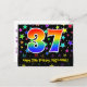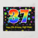 Framsidan av denna roliga, spännande och färgglada födelsedagskortdesign har en stor siffra "37" med ett regnbågsspektrum-gradering-mönster, tillsammans med meddelandet "Grattis på 37-årsdagen", och ett redigerbart mottagarnamn. Framsidan har dessutom ett färgglatt och livfullt stjärnformsmönster i bakgrunden. Baksidan har ett anpassat födelsedagsmeddelande, eller skulle kunna raderas och lämnas tomt om ett meddelande ska skrivas för hand istället. Ett födelsedagskort som detta kan vara ett roligt sätt att skicka födelsedagsönskningar till någon som firar sin trettio-sjunde födelsedag. Postkort som detta kan också användas för att inbjuda gäster till en födelsedagsfest eller ett