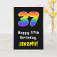 Den här glädjande och glatta födelseteckendesignen har numret "37" med ett vibrerande regnbågsspektrum inspirerat övertoningen mönster, tillsammans med meddelandet "Lycklig 37:e födelsedag" och en anpassningsbar mottagare namn. Insidan har ett hälsning-meddelande på personligens födelsedag, eller kan kanske tas bort och lämnas tomt om ett meddelande ska skrivas för hand i stället. Ett sådant här bra, redigerbart födelsedagskalenliga hälsningskort kan vara ett roligt för att skicka födelsedagskalendrar till någon som firar sin trettiosjunde födelsedag. [~Z0000627]