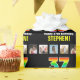 Den pappra designen med ett stort nummer "37" med ett färgstarkt regnbågsspektrum som inspirerar till gradienten mönster, plus meddelandet "37:e födelsedagen i Lycklig" och ett anpassade som tar emot namn. Det finns även foton som kan vara personlig, kanske med foton av mottagaren, mottagarens familj och vänner och/eller presentens avsändare. Roligt som är papper som denna kan användas när man slår in presenter som ges till någon i firande på deras trettiosjunde födelsedag. (Photography © Storytree Studios, Stanford, CA.) [~Z0000670]