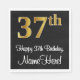 Den här eleganten har en lyxig och sofistikerad papper napkindesign med ett stort ordnummer "37:e" som har en faux/imitation guld-liknande gradient mönster, utöver födelsedagstecknet "Lycklig 37:e födelsedagen" och ett redigerbart namn i ett skript-stil. Bakgrunden är svart på färgad. Pappra servetter som denna kan användas vid en födelsedagsfest som hålls i firande på någons trettiosjunde födelsedag. [~Z0000516]