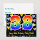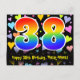 Framsidan av denna spännande, färgglada och kärleksfulla födelsedagstema postkortsdesign har en stor siffra "38" med ett regnbågsspektrum-gradering inspirerat mönster, tillsammans med meddelandet "Grattis på 38-årsdagen," och ett anpassningsbart mottagarnamn. Framsidan har dessutom ett livfullt och färgglatt kärleksfullt hjärtmönster i bakgrunden. Baksidan har ett personligt födelsedagsmeddelande, eller kan eventuellt lämnas tomt om ett meddelande ska skrivas för hand istället. Ett anpassningsbart födelsedagskort som detta kan vara ett roligt sätt att skicka ett meddelande för att fira någon:s trettioåttonde födelsedag. Postkort som detta kan också användas för att bjuda in gäster till en födels