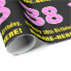 Den här roligten och den glatta födelsedagskalemat som omsluter papper design har ett stort nummer "38" med en strimlad mönster som innehåller hjärtformer och färgadens rosa av mörk och ljusa rosa. Det innehåller också hälsning:s födelsedagsmeddelande "Lycklig 38:e födelsedag" och en redigerbar mottagare av namn. Att packa pappert som detta kan användas när man ge en gåva eller present till heder för någons 38-årsdag. Det kan också vara ett val av roligt för någon vars födelsedag infaller på Alla hjärtans dag (14 februari), på grund av dess kärleksfulla hjärtsymboler och färg. [~Z0000435]