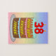 Denna glatta och uppslagna födelsedagspressdesign med pussel i pussel i tecknad-stil ger en bild av en treskiktad födelsedagskalas med sifferformade ljus ovanpå som visar åldern "38", tillsammans med meddelandet "LYCKLIG 38:e BIRTHDAY", och ett anpassade-mottagare i namn. Bakgrunden har en gradient mönster som är inspirerad av skalan för pastellregnbåge med flera färg. Ett färglöst, anpassat födelsedagspressel som det här kan vara ett roligt sätt att leverera önskemål till någon som firar sin trettioåttonde födelsedag. [~Z0000621]