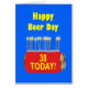 38:e födelsedagskort. Ett lustigt födelsedagskort som visar födelsedagsljus som brinner på en ölburk. Önska lycklig öl med det här fuktiga ölkortet.
